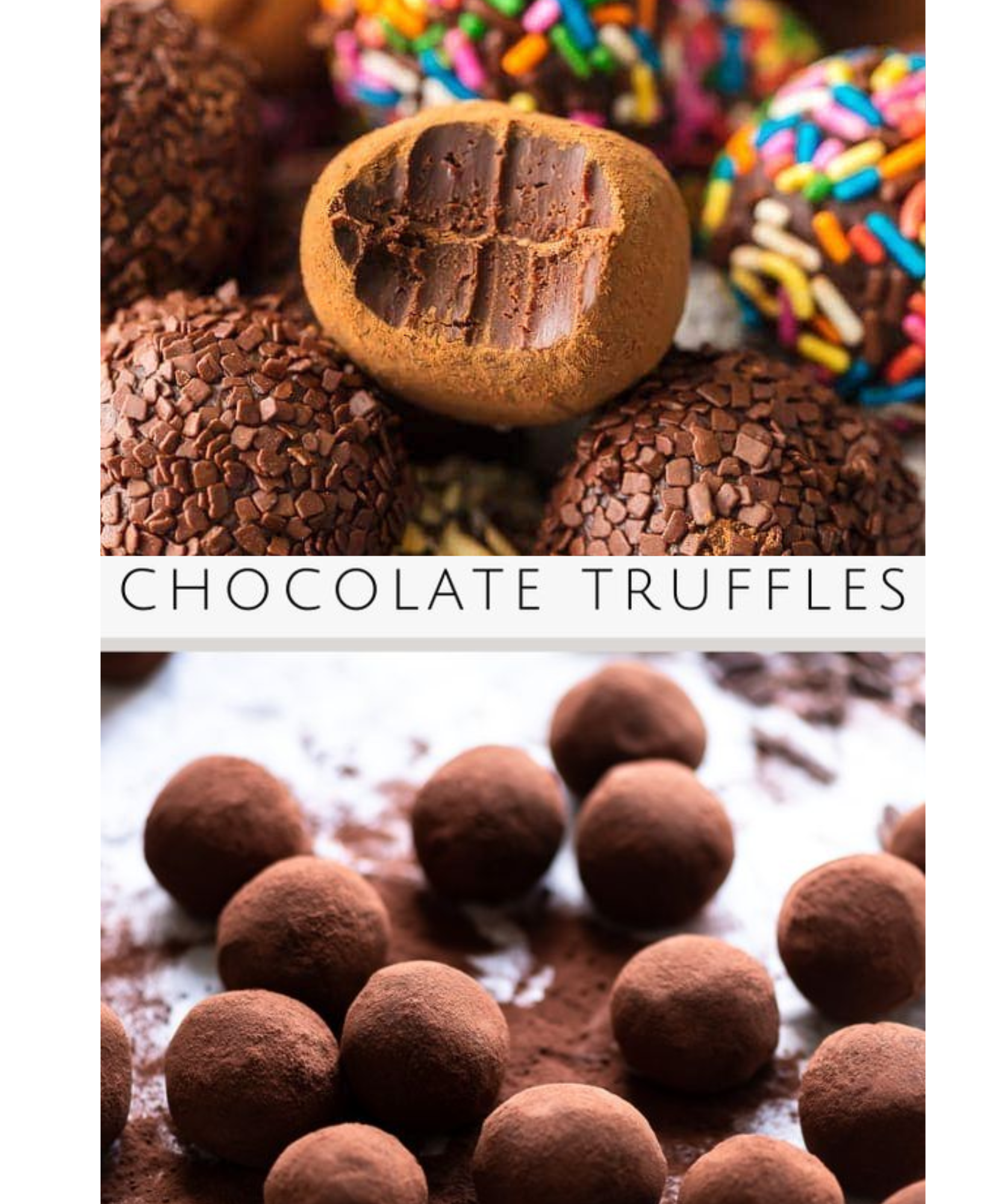 These chocolate truffles are an incredibly decadent bite that combines a dark chocolate ganache rolled into small balls and covered in cocoa powder.